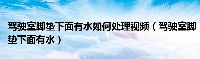 大家好,小美来为大家解答以上问题。驾驶室脚垫下面有水如何处理视频,驾驶室脚垫下面有水很多人还不知道,现在让我们一起来看看吧!