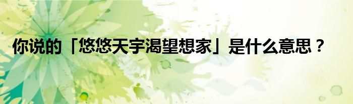 关于你说的「悠悠天宇渴望想家」是什么意思?这个很多人还不知道,今天菲菲来为大家解答以上的问题,现在让我们一起来看看吧!