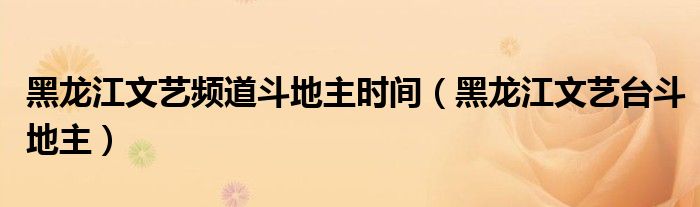 关于黑龙江文艺频道斗地主时间,黑龙江文艺台斗地主这个很多人还不知道,今天菲菲来为大家解答以上的问题,现在让我们一起来看看吧!