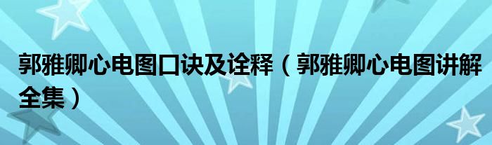 关于郭雅卿心电图口诀及诠释,郭雅卿心电图讲解全集这个很多人还不知道,今天菲菲来为大家解答以上的问题,现在让我们一起来看看吧!