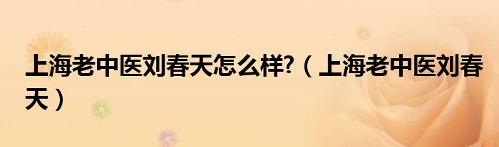 关于上海老中医刘春天怎么样?,上海老中医刘春天这个很多人还不知道,今天菲菲来为大家解答以上的问题,现在让我们一起来看看吧!
