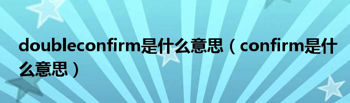 关于doubleconfirm是什么意思,confirm是什么意思这个很多人还不知道,今天菲菲来为大家解答以上的问题,现在让我们一起来看看吧!