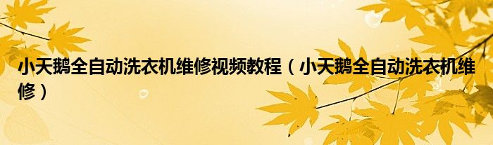 小天鹅全自动洗衣机维修视频教程(小天鹅全自动洗衣机维修)