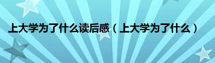 关于上大学为了什么读后感,上大学为了什么这个很多人还不知道,今天菲菲来为大家解答以上的问题,现在让我们一起来看看吧!