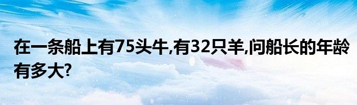 关于在一条船上有75头牛,有32只羊,问船长的年龄有多大?这个很多人还不知道,今天菲菲来为大家解答以上的问题,现在让我们一起来看看吧!