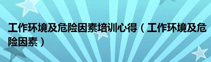 工作环境及危险因素培训心得(工作环境及危险因素)