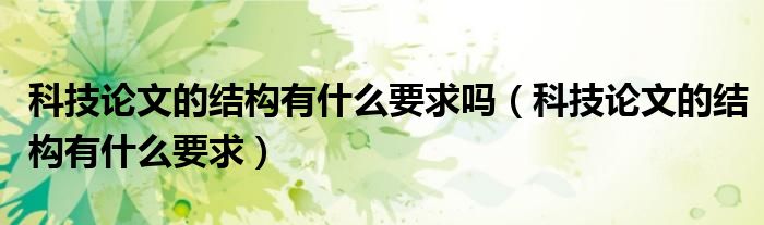 关于科技论文的结构有什么要求吗,科技论文的结构有什么要求这个很多人还不知道,今天菲菲来为大家解答以上的问题,现在让我们一起来看看吧!