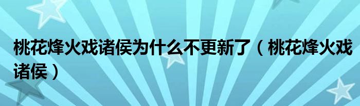关于桃花烽火戏诸侯为什么不更新了,桃花烽火戏诸侯这个很多人还不知道,今天菲菲来为大家解答以上的问题,现在让我们一起来看看吧!