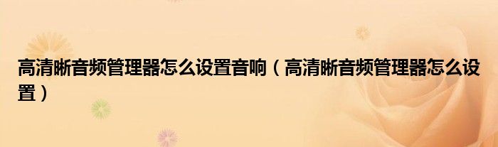 关于高清晰音频管理器怎么设置音响,高清晰音频管理器怎么设置这个很多人还不知道,今天菲菲来为大家解答以上的问题,现在让我们一起来看看吧!