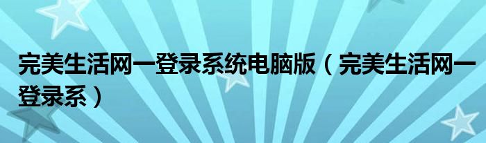 关于完美生活网一登录系统电脑版,完美生活网一登录系这个很多人还不知道,今天菲菲来为大家解答以上的问题,现在让我们一起来看看吧!