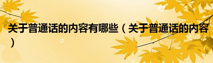 关于关于普通话的内容有哪些,关于普通话的内容这个很多人还不知道,今天菲菲来为大家解答以上的问题,现在让我们一起来看看吧!