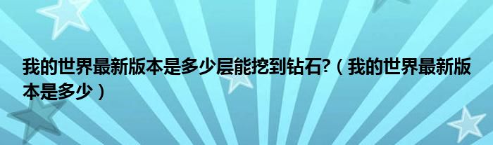 关于我的世界最新版本是多少层能挖到钻石?,我的世界最新版本是多少这个很多人还不知道,今天菲菲来为大家解答以上的问题,现在让我们一起来看看吧!