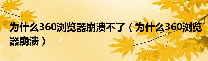 关于为什么360浏览器崩溃不了,为什么360浏览器崩溃这个很多人还不知道,今天菲菲来为大家解答以上的问题,现在让我们一起来看看吧!