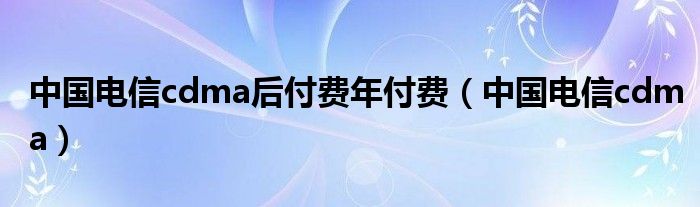 大家好,来宝来为大家解答以下问题,中国电信cdma后付费年付费,中国电信cdma很多人还不知道,今天让我们一起来看看吧!