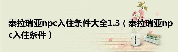 关于泰拉瑞亚npc入住条件大全1.3,泰拉瑞亚npc入住条件这个很多人还不知道,今天菲菲来为大家解答以上的问题,现在让我们一起来看看吧!