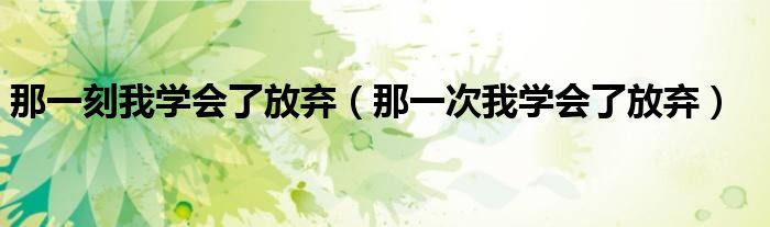 关于那一刻我学会了放弃,那一次我学会了放弃这个很多人还不知道,今天菲菲来为大家解答以上的问题,现在让我们一起来看看吧!