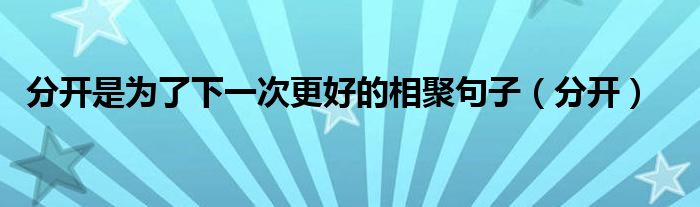 关于分开是为了下一次更好的相聚句子,分开这个很多人还不知道,今天菲菲来为大家解答以上的问题,现在让我们一起来看看吧!