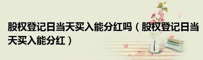 关于股权登记日当天买入能分红吗,股权登记日当天买入能分红这个很多人还不知道,今天菲菲来为大家解答以上的问题,现在让我们一起来看看吧!
