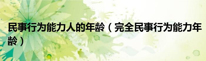关于民事行为能力人的年龄,完全民事行为能力年龄这个很多人还不知道,今天菲菲来为大家解答以上的问题,现在让我们一起来看看吧!