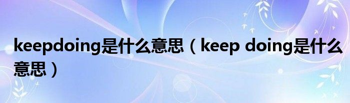 关于keepdoing是什么意思,keep doing是什么意思这个很多人还不知道,今天菲菲来为大家解答以上的问题,现在让我们一起来看看吧!