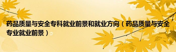 关于药品质量与安全专科就业前景和就业方向,药品质量与安全专业就业前景这个很多人还不知道,今天菲菲来为大家解答以上的问题,现在让我们一起来看看吧!