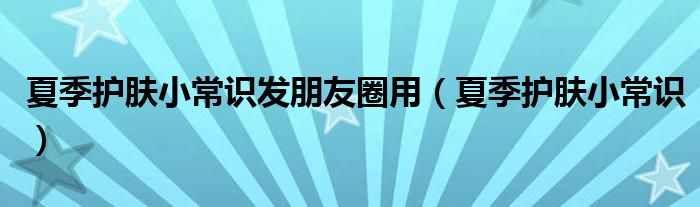 关于夏季护肤小常识发朋友圈用,夏季护肤小常识这个很多人还不知道,今天菲菲来为大家解答以上的问题,现在让我们一起来看看吧!