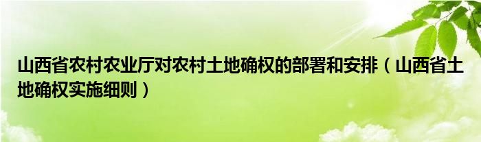 山西省农村农业厅对农村土地确权的部署和安排(山西省土地确权实施细则)