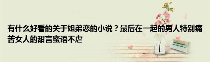 关于有什么好看的关于姐弟恋的小说?最后在一起的男人特别痛苦女人的甜言蜜语不虐这个很多人还不知道,今天菲菲来为大家解答以上的问题,现在让我们一起来看看吧!