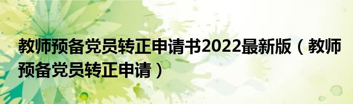 关于教师预备党员转正申请书2022最新版,教师预备党员转正申请这个很多人还不知道,今天菲菲来为大家解答以上的问题,现在让我们一起来看看吧!