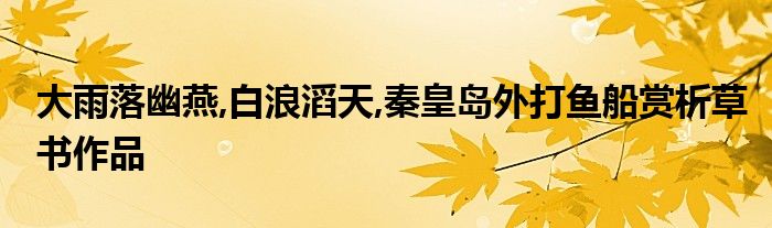 关于大雨落幽燕,白浪滔天,秦皇岛外打鱼船赏析草书作品这个很多人还不知道,今天菲菲来为大家解答以上的问题,现在让我们一起来看看吧!