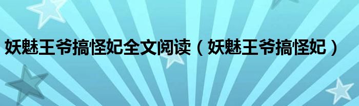 关于妖魅王爷搞怪妃全文阅读,妖魅王爷搞怪妃这个很多人还不知道,今天菲菲来为大家解答以上的问题,现在让我们一起来看看吧!