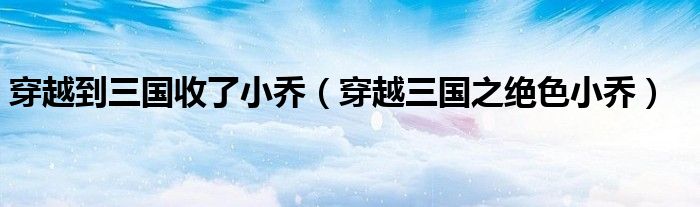 关于穿越到三国收了小乔,穿越三国之绝色小乔这个很多人还不知道,今天菲菲来为大家解答以上的问题,现在让我们一起来看看吧!