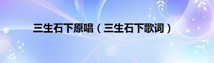 关于三生石下原唱,三生石下歌词这个很多人还不知道,今天菲菲来为大家解答以上的问题,现在让我们一起来看看吧!