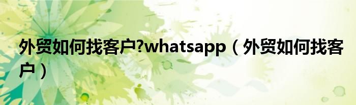 关于外贸如何找客户?whatsapp,外贸如何找客户这个很多人还不知道,今天菲菲来为大家解答以上的问题,现在让我们一起来看看吧!