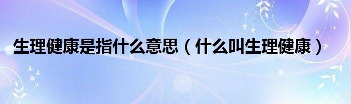 关于生理健康是指什么意思,什么叫生理健康这个很多人还不知道,今天菲菲来为大家解答以上的问题,现在让我们一起来看看吧!