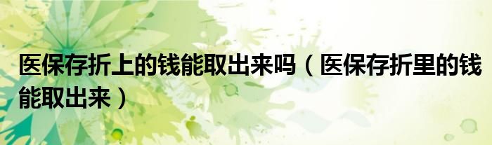 医保存折上的钱能取出来吗(医保存折里的钱能取出来)