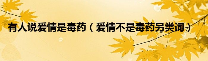 关于有人说爱情是毒药,爱情不是毒药另类词这个很多人还不知道,今天菲菲来为大家解答以上的问题,现在让我们一起来看看吧!
