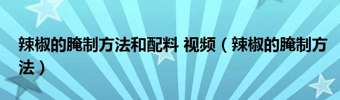 关于辣椒的腌制方法和配料 视频,辣椒的腌制方法这个很多人还不知道,今天菲菲来为大家解答以上的问题,现在让我们一起来看看吧!