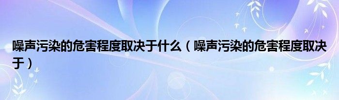 关于噪声污染的危害程度取决于什么,噪声污染的危害程度取决于这个很多人还不知道,今天菲菲来为大家解答以上的问题,现在让我们一起来看看吧!