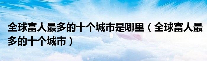 关于全球富人最多的十个城市是哪里,全球富人最多的十个城市这个很多人还不知道,今天菲菲来为大家解答以上的问题,现在让我们一起来看看吧!
