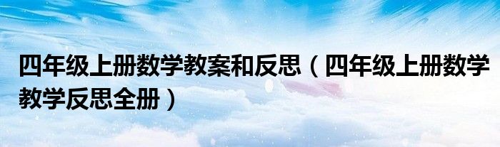 关于四年级上册数学教案和反思,四年级上册数学教学反思全册这个很多人还不知道,今天菲菲来为大家解答以上的问题,现在让我们一起来看看吧!