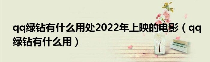 关于qq绿钻有什么用处2022年上映的电影,qq绿钻有什么用这个很多人还不知道,今天菲菲来为大家解答以上的问题,现在让我们一起来看看吧!