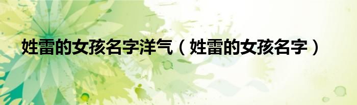 关于姓雷的女孩名字洋气,姓雷的女孩名字这个很多人还不知道,今天菲菲来为大家解答以上的问题,现在让我们一起来看看吧!