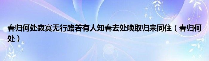 关于春归何处寂寞无行路若有人知春去处唤取归来同住,春归何处这个很多人还不知道,今天菲菲来为大家解答以上的问题,现在让我们一起来看看吧!