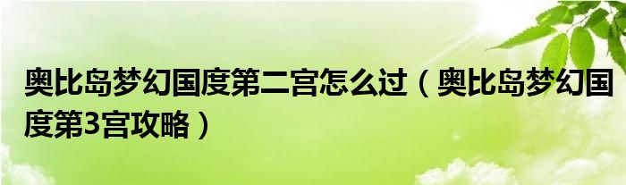 关于奥比岛梦幻国度第二宫怎么过,奥比岛梦幻国度第3宫攻略这个很多人还不知道,今天菲菲来为大家解答以上的问题,现在让我们一起来看看吧!