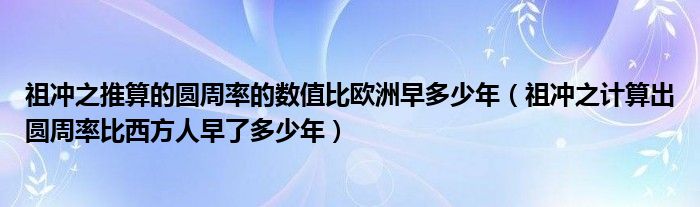 关于祖冲之推算的圆周率的数值比欧洲早多少年,祖冲之计算出圆周率比西方人早了多少年这个很多人还不知道,今天菲菲来为大家解答以上的问题,现在让我们一起来看看吧!