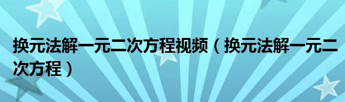 关于换元法解一元二次方程视频,换元法解一元二次方程这个很多人还不知道,今天菲菲来为大家解答以上的问题,现在让我们一起来看看吧!