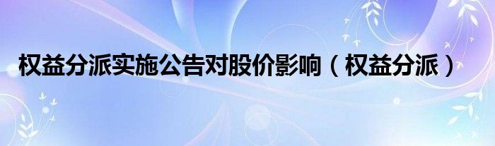 关于权益分派实施公告对股价影响,权益分派这个很多人还不知道,今天菲菲来为大家解答以上的问题,现在让我们一起来看看吧!