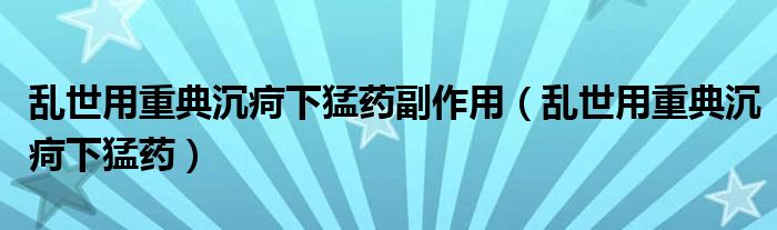 乱世用重典沉疴下猛药副作用(乱世用重典沉疴下猛药)