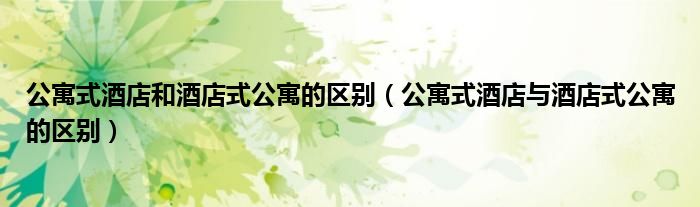 关于公寓式酒店和酒店式公寓的区别,公寓式酒店与酒店式公寓的区别这个很多人还不知道,今天菲菲来为大家解答以上的问题,现在让我们一起来看看吧!